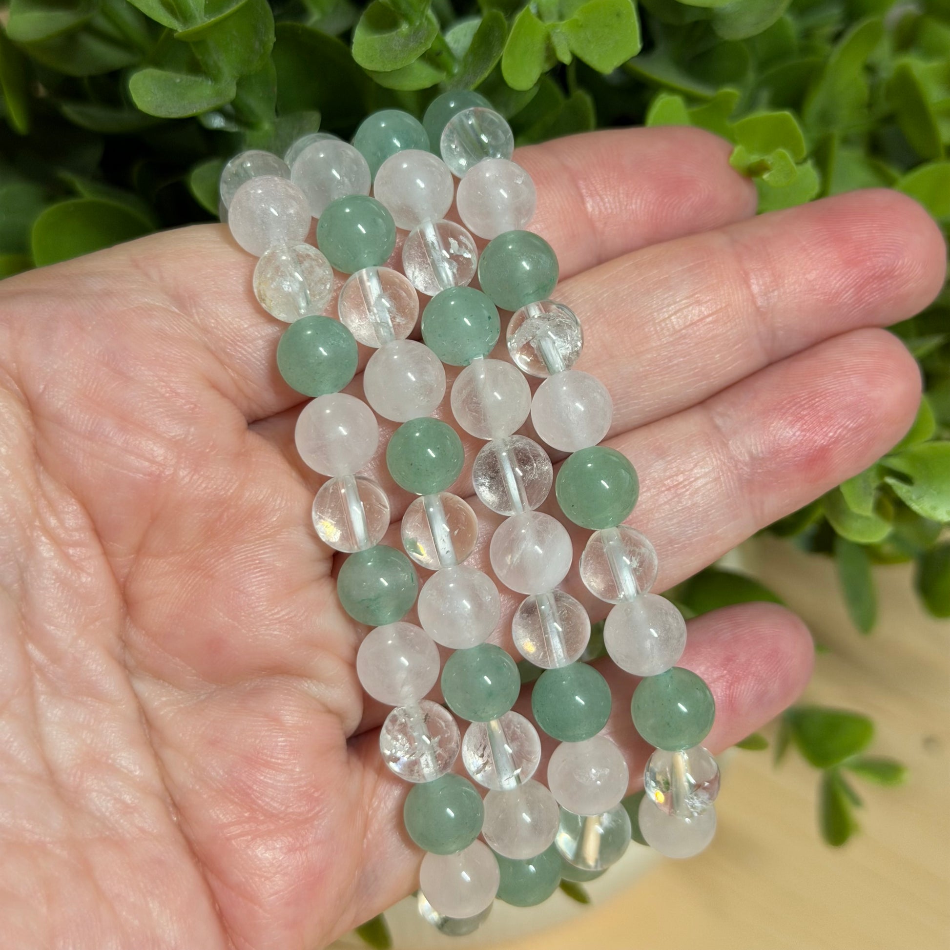 Open your heart to love and harmony with this Heart Chakra Bead Bracelet, featuring 8 mm Green Aventurine, Rose Quartz, and Clear Quartz beads. Rose Quartz encourages love and compassion, Green Aventurine supports emotional balance and growth, while Clear Quartz amplifies their healing energy. Together, this beautiful trio promotes heart healing, positivity, and a deeper connection to love in all its forms.