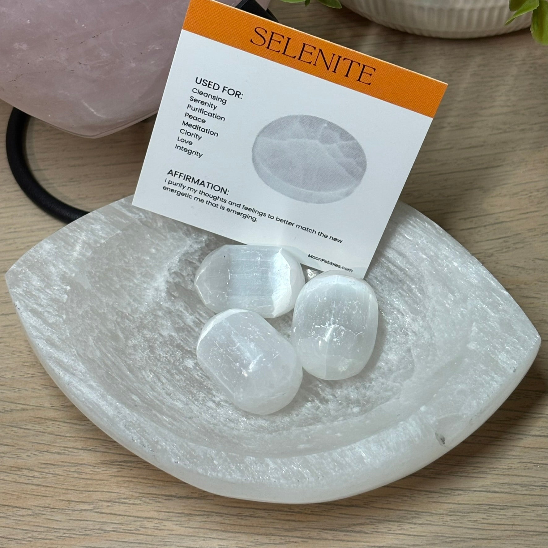 Selenite Crystal Tumbles (3 Pack + Info Card)