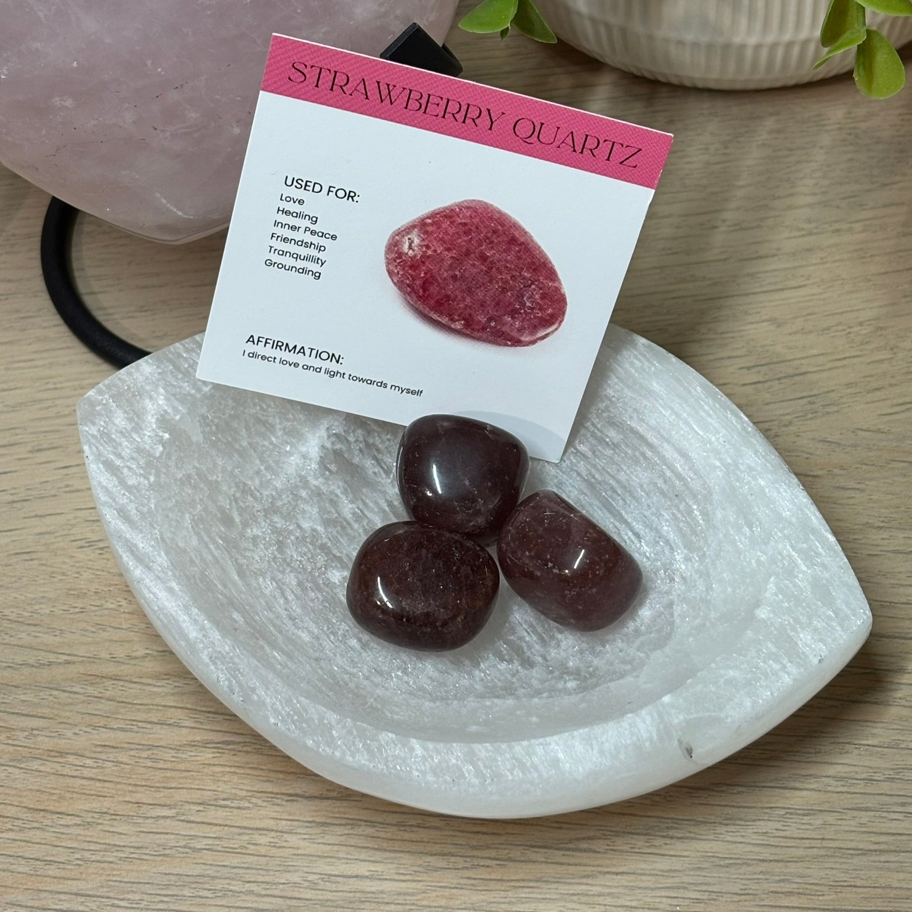Strawberry Quartz Crystal Tumbles (3 Pack + Info Card)